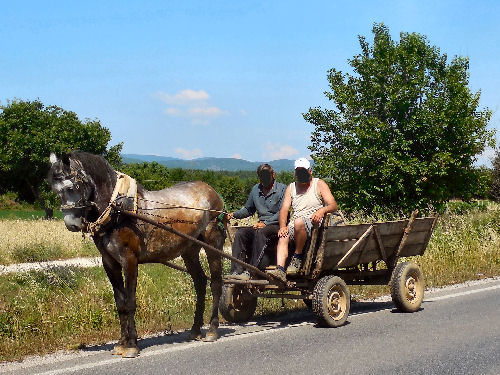 In Makedonien gibt es viele schmale Straßen jugoslawischer Bauart, auf die ein Lkw gerade so drauf passt, die jedoch bei wenig Verkehr kein großes Prroblem darstellen. So war die Tour von Štip (Штип) über Kratovo (Кратово) bis Kjustendil (Кюстендил) in Bulgarien für mich nahezu Genuss-Radeln, da es auf der Strecke so wenig Verkehr gab.